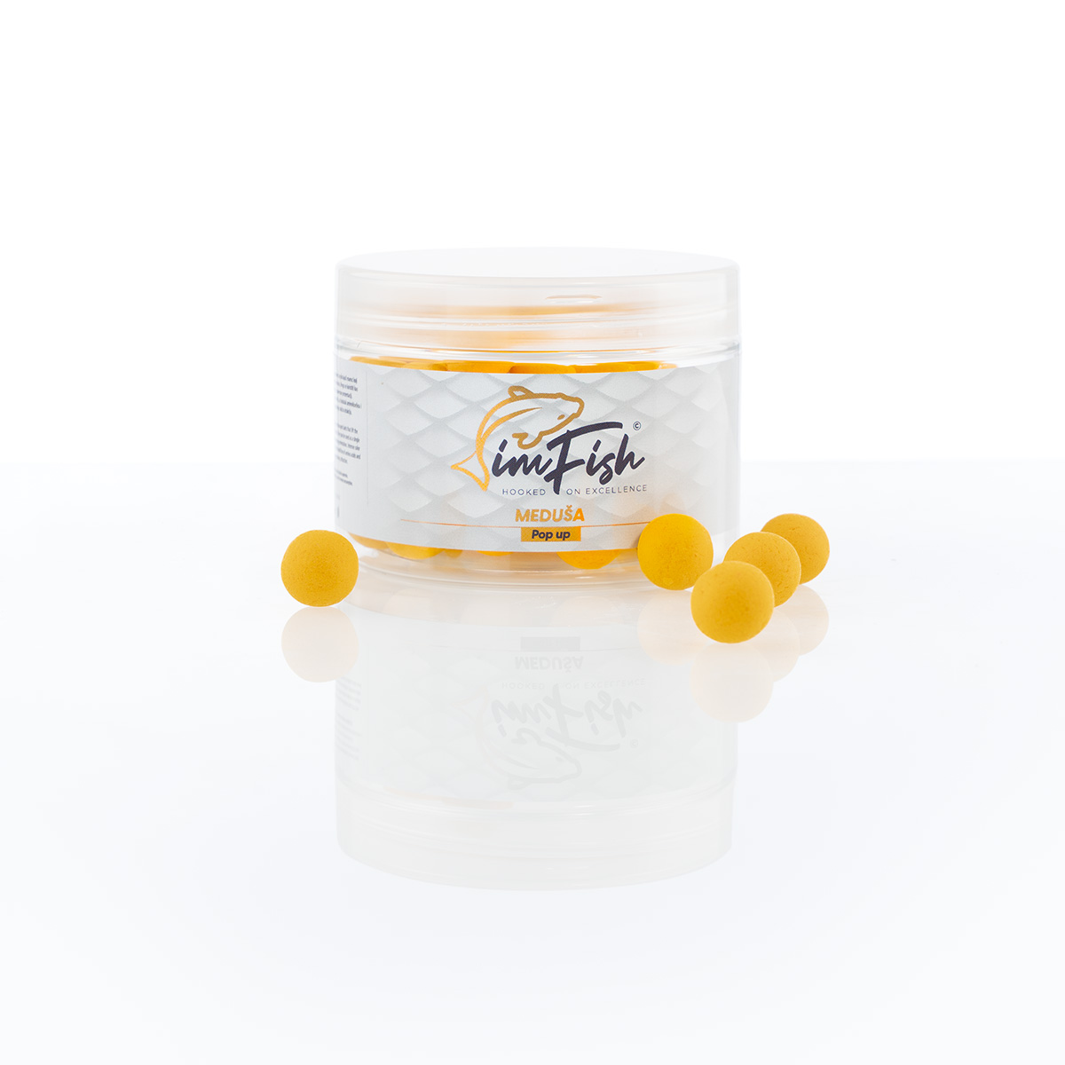 Meduša Pop-Up 12 mm su premium plutajući mamci dizajnirani za maksimalnu vidljivost i atrakciju pod vodom. Zahvaljujući idealnoj plovnosti, podižu mamac iznad dna i omogućuju savršenu prezentaciju. Intenzivna žuta boja, snažan i prodoran miris te dodatak aminokiselina i posebnih atraktora stvaraju snažnu signalnu zonu u vodi.